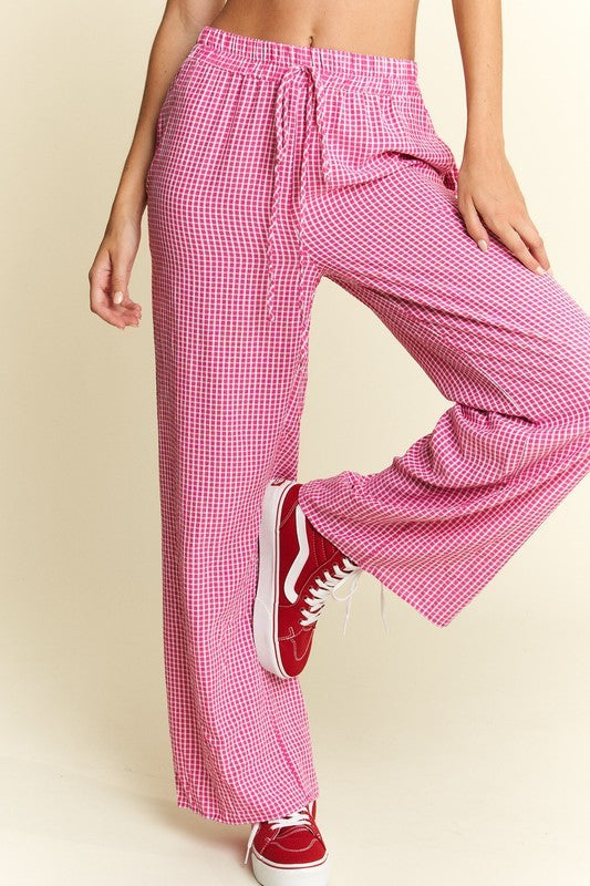 Slip into pure comfort with our Checkered Boxer Loungers—the perfect blend of style and coziness. Crafted from lightweight pink gingham fabric, these loungers feature an elastic waistband with a decorative tie, practical side pockets, and a flattering straight-leg silhouette. They're your new go-to for relaxing at home or running errands in effortless style. Cuddle up in fabric that feels as good as it looks.